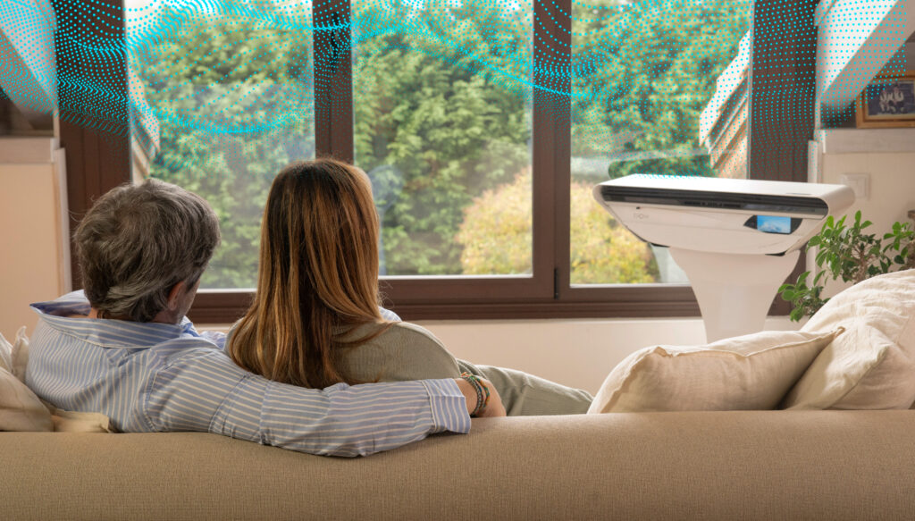 Biow emite energía al aire que nos rodea mejorando su calidad a través de la eliminación de partículas en suspensión en interiores.
